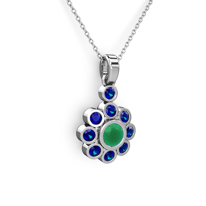 Lab safir ve kök zümrüt 8 ayar beyaz altın kolye (40 cm beyaz altın rolo zincir)