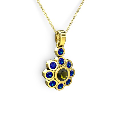 Lab safir ve peridot 14 ayar altın kolye (40 cm altın rolo zincir)