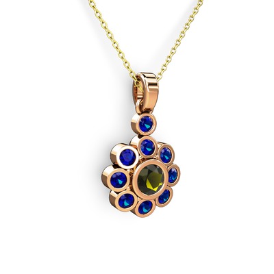 Lab safir ve peridot 14 ayar rose altın kolye (40 cm altın rolo zincir)