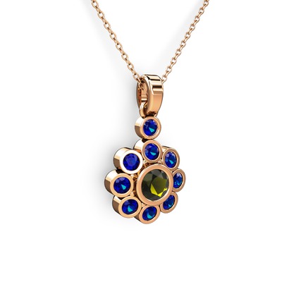 Lab safir ve peridot 18 ayar rose altın kolye (40 cm rose altın rolo zincir)