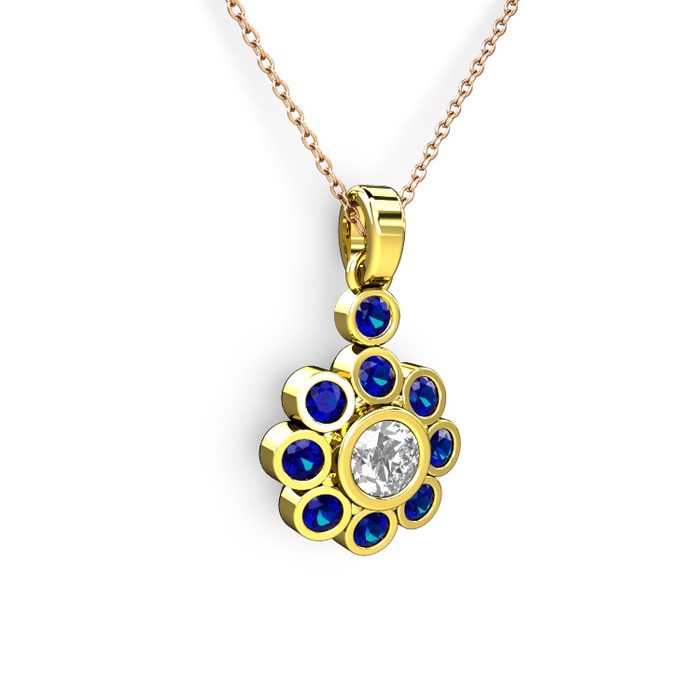 Lab safir ve pırlanta 8 ayar altın kolye (0.5 karat, 40 cm gümüş rolo zincir)
