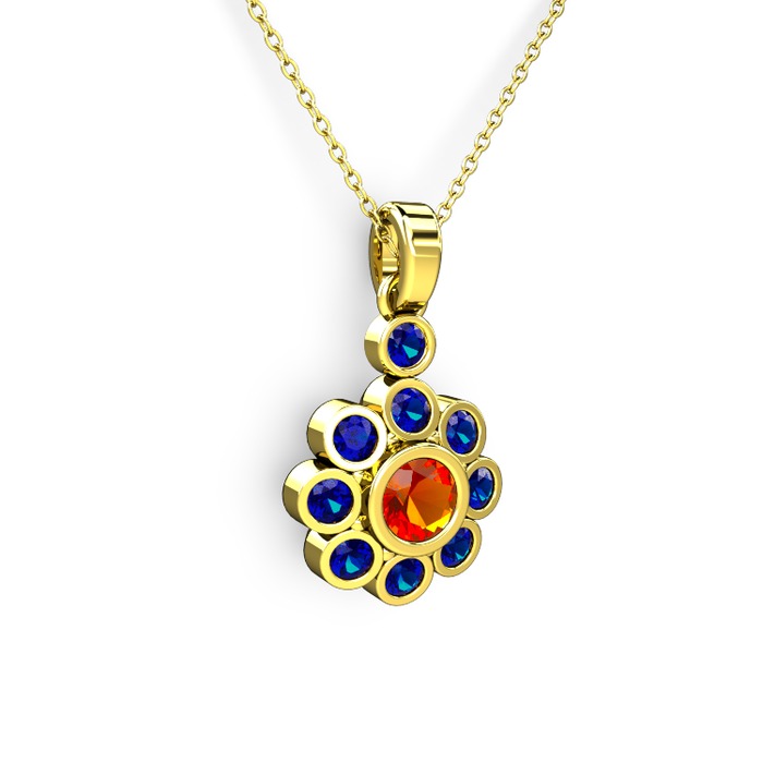 Lab safir ve sitrin 18 ayar altın kolye (40 cm altın rolo zincir)