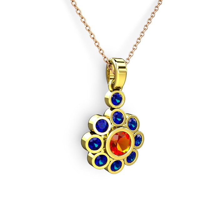 Lab safir ve sitrin 18 ayar altın kolye (40 cm rose altın rolo zincir)