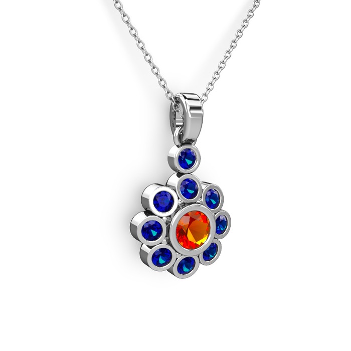 Lab safir ve sitrin 8 ayar beyaz altın kolye (40 cm beyaz altın rolo zincir)