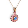 Pembe kuvars ve akuamarin 18 ayar rose altın kolye (40 cm rose altın rolo zincir)