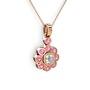 Pembe kuvars ve beyaz zirkon 8 ayar rose altın kolye (40 cm rose altın rolo zincir)