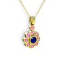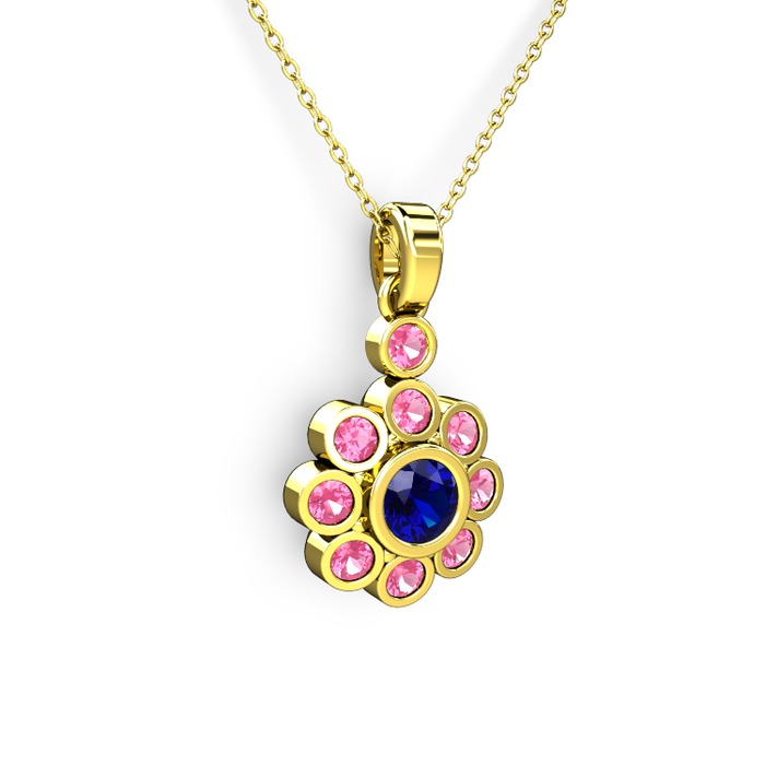 Pembe kuvars ve lab safir 925 ayar altın kaplama gümüş kolye (40 cm altın rolo zincir)