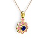 Pembe kuvars ve lab safir 925 ayar altın kaplama gümüş kolye (40 cm rose altın rolo zincir)
