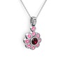 Pembe kuvars ve rodolit garnet 14 ayar beyaz altın kolye (40 cm beyaz altın rolo zincir)