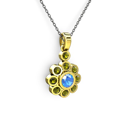 Peridot ve akuamarin 18 ayar altın kolye (40 cm gümüş rolo zincir)