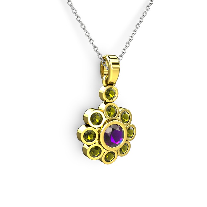 Peridot ve ametist 18 ayar altın kolye (40 cm beyaz altın rolo zincir)
