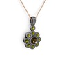 Peridot ve dumanlı kuvars 925 ayar siyah rodyum kaplama gümüş kolye (40 cm rose altın rolo zincir)
