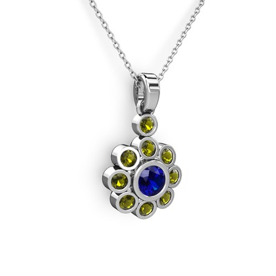 Peridot ve lab safir 14 ayar beyaz altın kolye (40 cm beyaz altın rolo zincir)