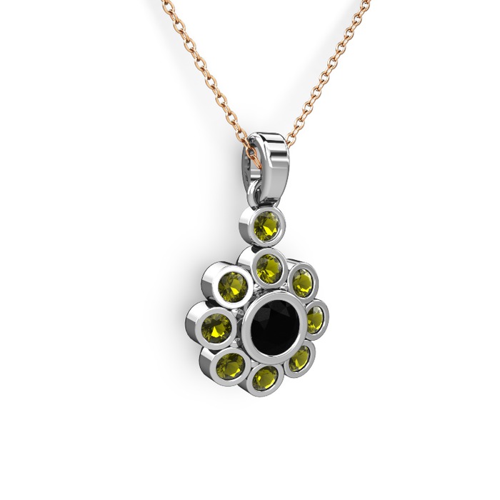 Peridot ve siyah zirkon 925 ayar gümüş kolye (40 cm rose altın rolo zincir)