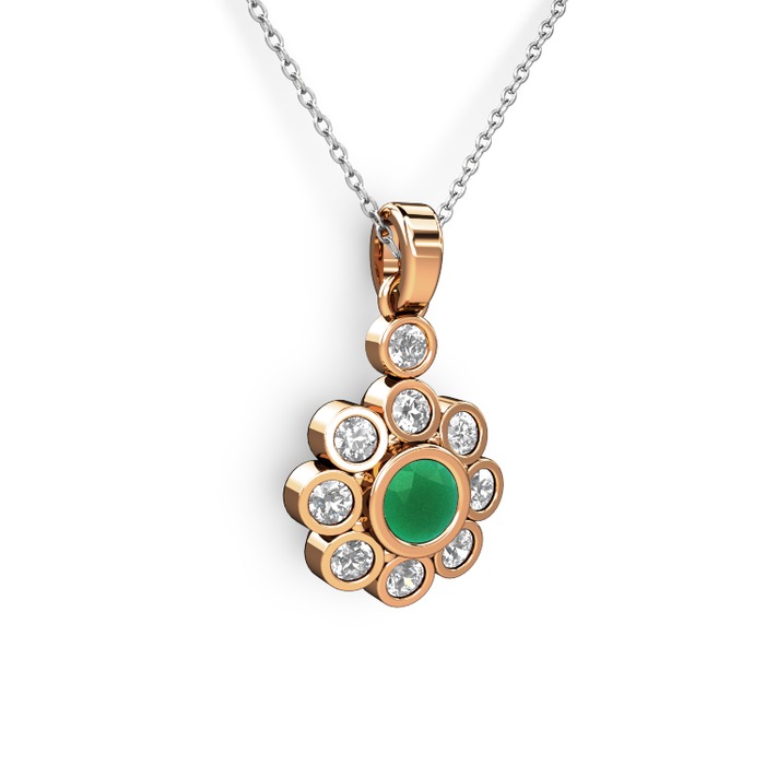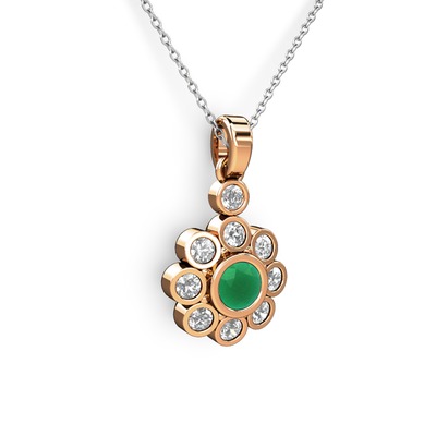 Pırlanta ve kök zümrüt 925 ayar rose altın kaplama gümüş kolye (0.54 karat, 40 cm beyaz altın rolo zincir)