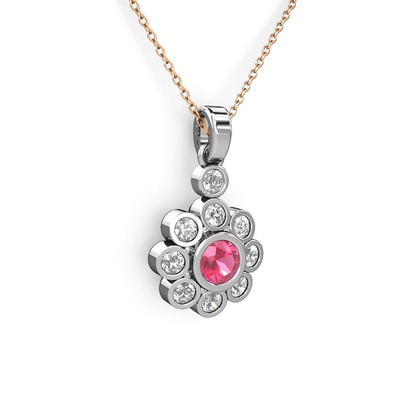 Pırlanta ve pembe kuvars 8 ayar beyaz altın kolye (0.54 karat, 40 cm rose altın rolo zincir)