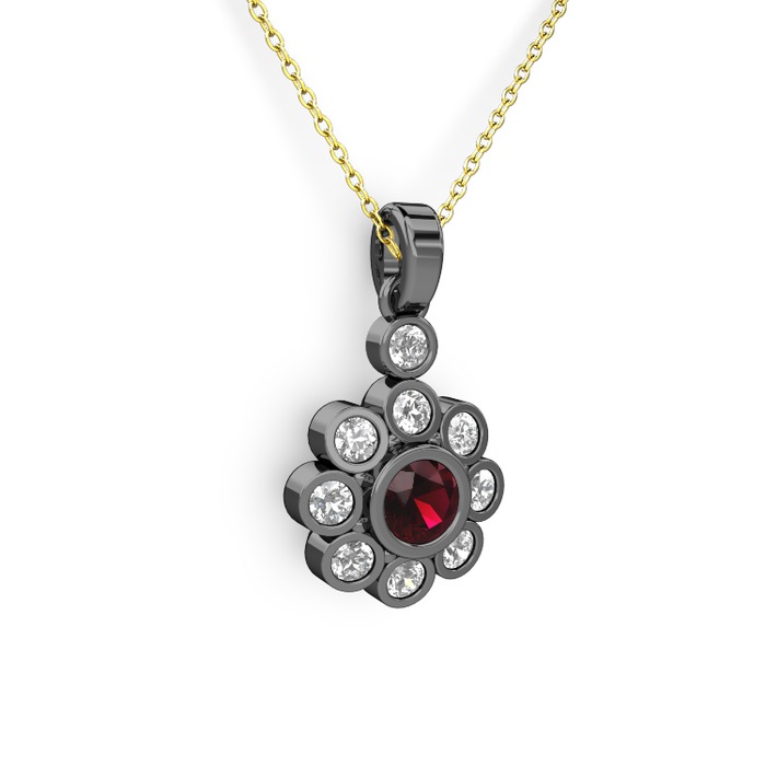 Pırlanta ve rodolit garnet 925 ayar siyah rodyum kaplama gümüş kolye (0.54 karat, 40 cm altın rolo zincir)