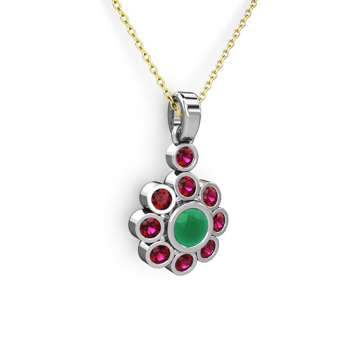 Rodolit garnet ve kök zümrüt 14 ayar beyaz altın kolye (40 cm altın rolo zincir)