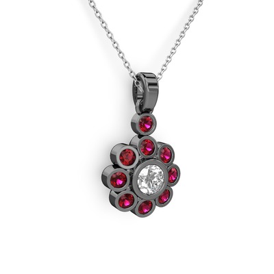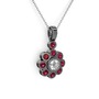 Rodolit garnet ve swarovski 925 ayar siyah rodyum kaplama gümüş kolye (40 cm beyaz altın rolo zincir)