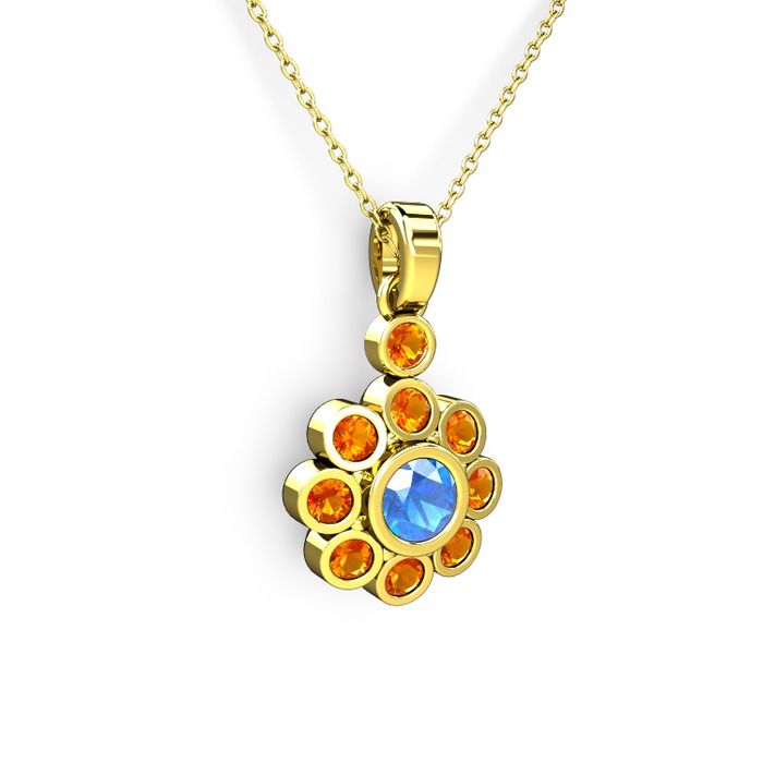 Sitrin ve akuamarin 18 ayar altın kolye (40 cm altın rolo zincir)