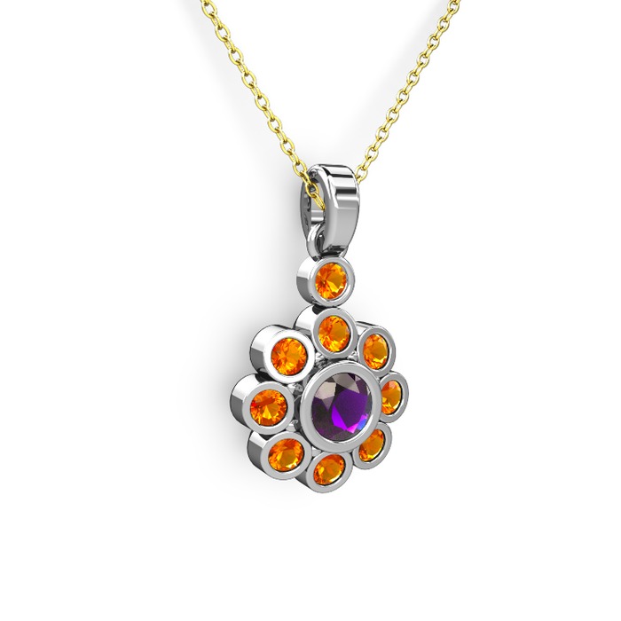 Sitrin ve ametist 8 ayar beyaz altın kolye (40 cm altın rolo zincir)