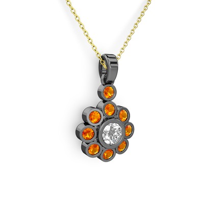 Sitrin ve beyaz zirkon 925 ayar siyah rodyum kaplama gümüş kolye (40 cm altın rolo zincir)