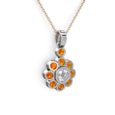 Sitrin ve pırlanta 925 ayar gümüş kolye (0.5 karat, 40 cm rose altın rolo zincir)
