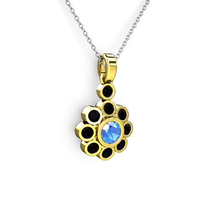 Siyah zirkon ve akuamarin 18 ayar altın kolye (40 cm gümüş rolo zincir)
