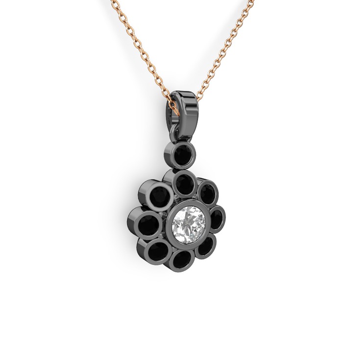 Siyah zirkon ve beyaz zirkon 925 ayar siyah rodyum kaplama gümüş kolye (40 cm rose altın rolo zincir)