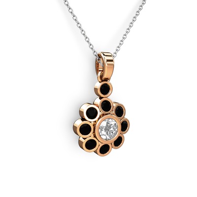 Siyah zirkon ve elmas 8 ayar rose altın kolye (0.5 karat, 40 cm gümüş rolo zincir)
