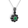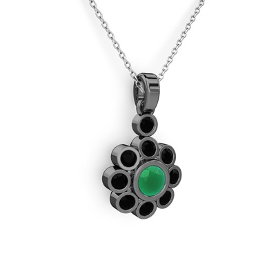 Siyah zirkon ve kök zümrüt 925 ayar siyah rodyum kaplama gümüş kolye (40 cm beyaz altın rolo zincir)