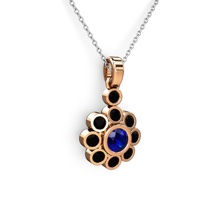Siyah zirkon ve lab safir 8 ayar rose altın kolye (40 cm beyaz altın rolo zincir)