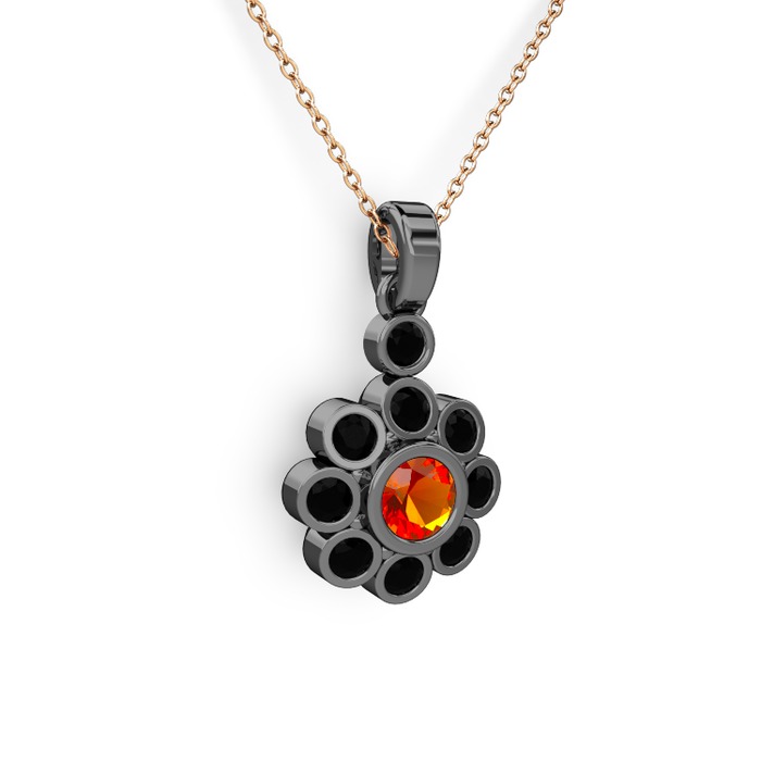 Siyah zirkon ve sitrin 925 ayar siyah rodyum kaplama gümüş kolye (40 cm gümüş rolo zincir)