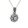 Swarovski ve elmas 925 ayar siyah rodyum kaplama gümüş kolye (0.5 karat, 40 cm rose altın rolo zincir)