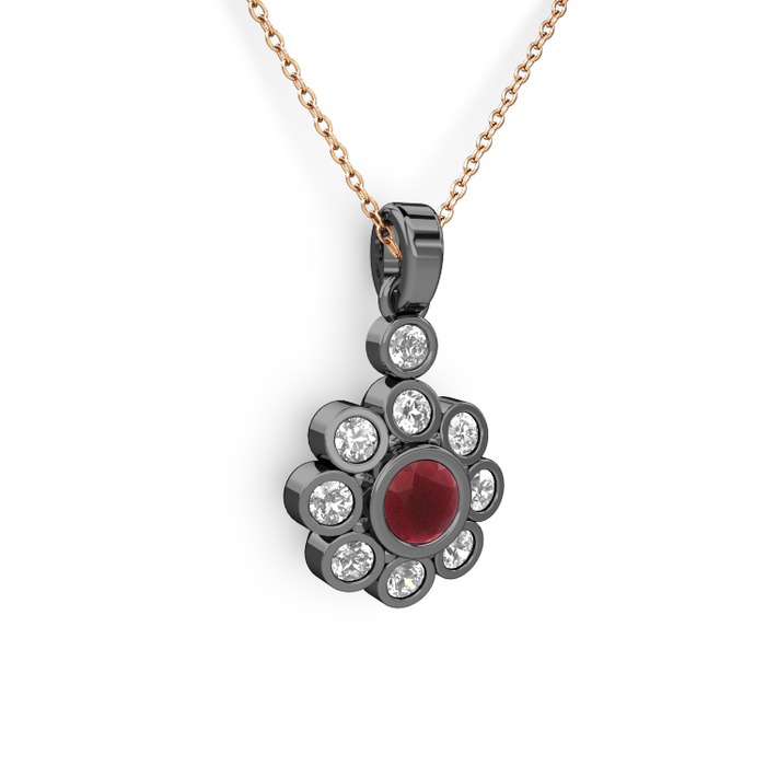 Swarovski ve kök yakut 925 ayar siyah rodyum kaplama gümüş kolye (40 cm rose altın rolo zincir)