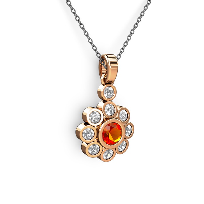 Swarovski ve sitrin 8 ayar rose altın kolye (40 cm gümüş rolo zincir)