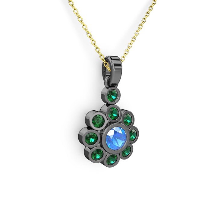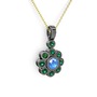 Yeşil kuvars ve akuamarin 925 ayar siyah rodyum kaplama gümüş kolye (40 cm altın rolo zincir)