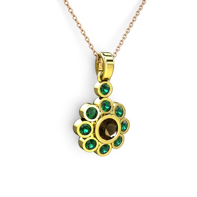 Yeşil kuvars ve dumanlı kuvars 8 ayar altın kolye (40 cm rose altın rolo zincir)
