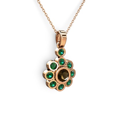 Yeşil kuvars ve dumanlı kuvars 8 ayar rose altın kolye (40 cm rose altın rolo zincir)