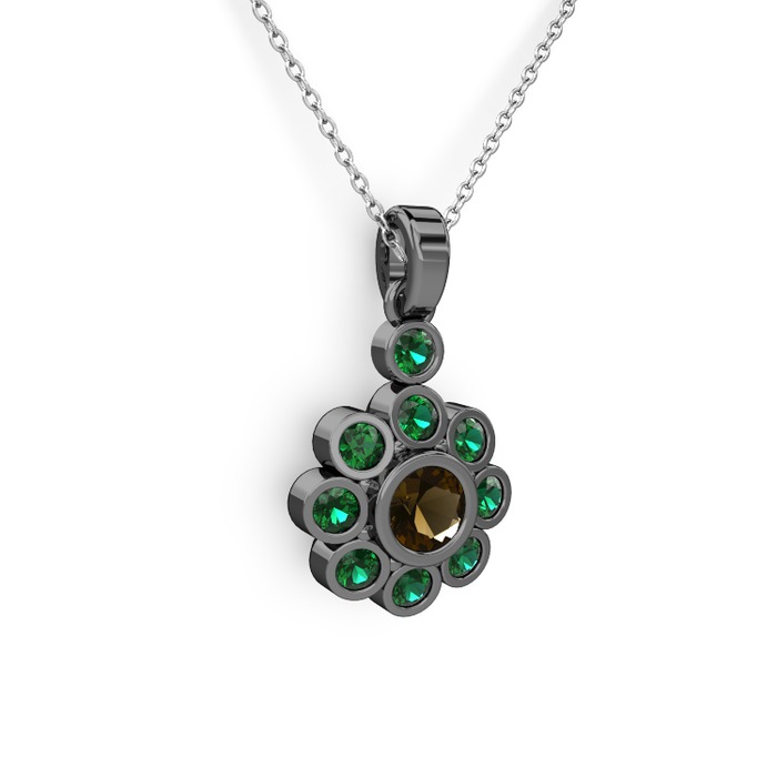 Yeşil kuvars ve dumanlı kuvars 925 ayar siyah rodyum kaplama gümüş kolye (40 cm beyaz altın rolo zincir)