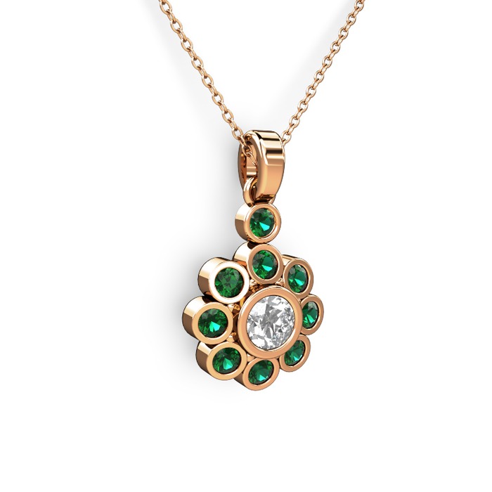 Yeşil kuvars ve elmas 8 ayar rose altın kolye (0.5 karat, 40 cm rose altın rolo zincir)