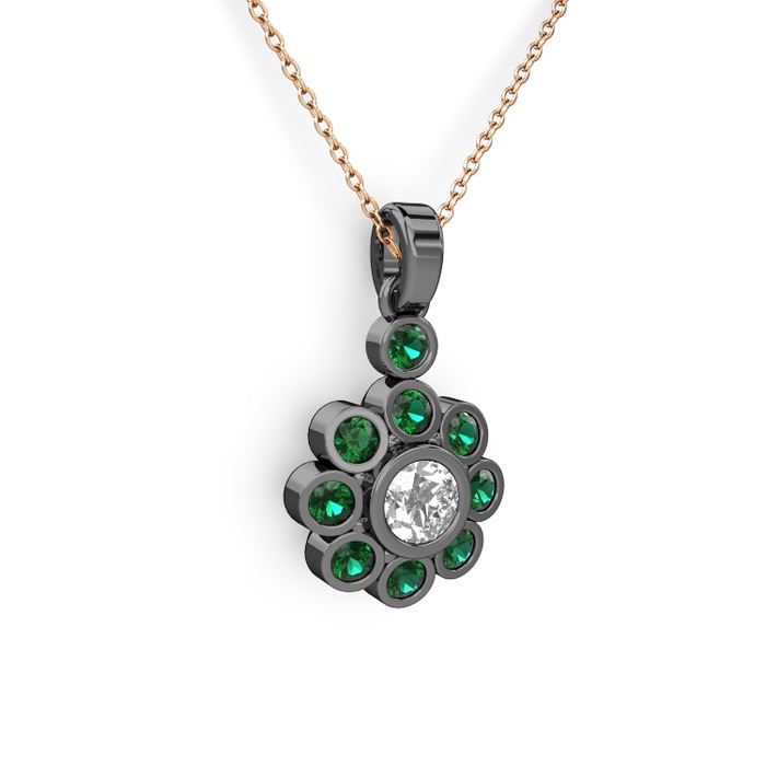 Yeşil kuvars ve elmas 925 ayar siyah rodyum kaplama gümüş kolye (0.5 karat, 40 cm gümüş rolo zincir)