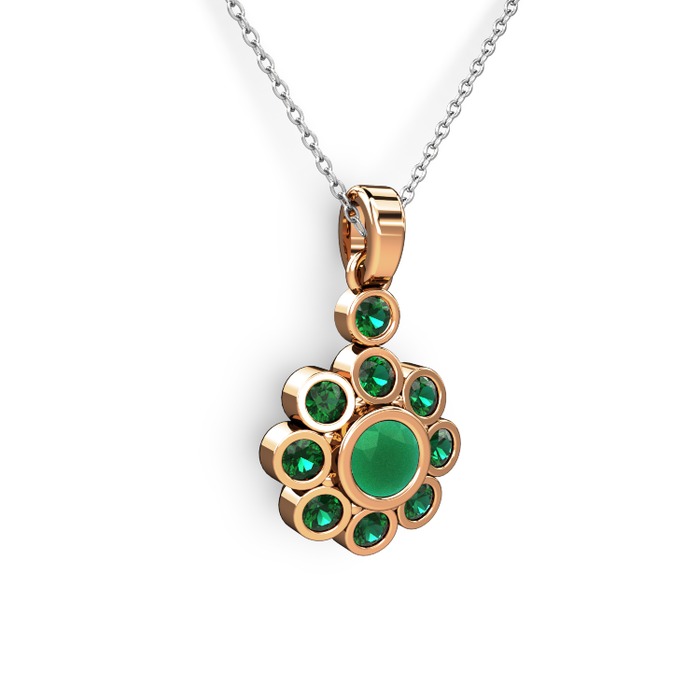 Yeşil kuvars ve kök zümrüt 925 ayar rose altın kaplama gümüş kolye (40 cm beyaz altın rolo zincir)
