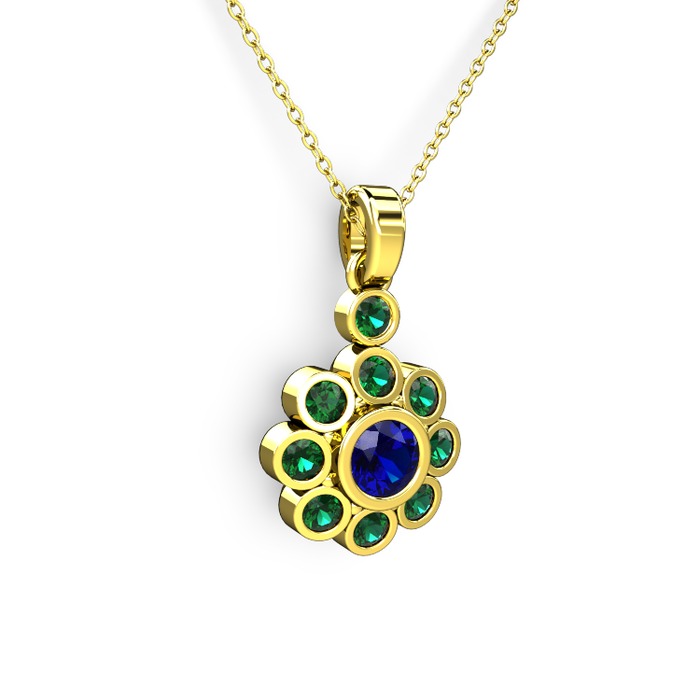 Yeşil kuvars ve lab safir 18 ayar altın kolye (40 cm altın rolo zincir)