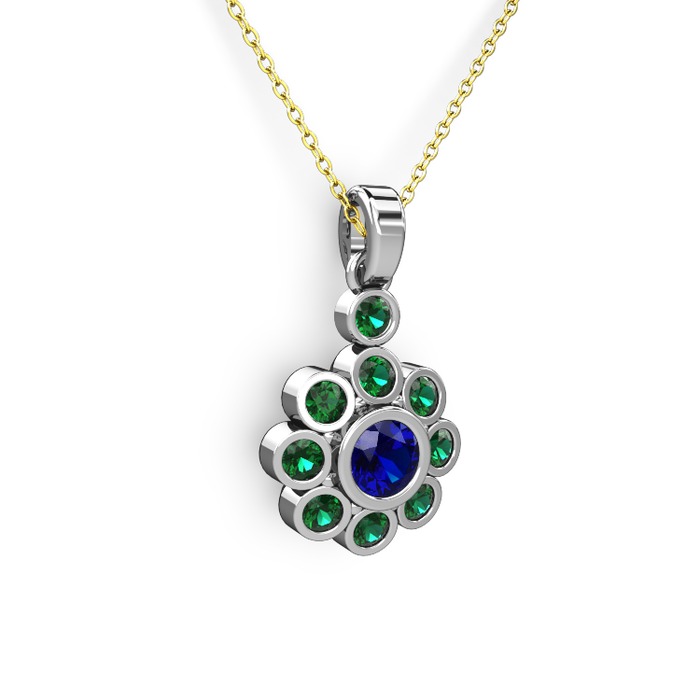 Yeşil kuvars ve lab safir 925 ayar gümüş kolye (40 cm altın rolo zincir)