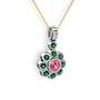 Yeşil kuvars ve pembe kuvars 14 ayar beyaz altın kolye (40 cm altın rolo zincir)