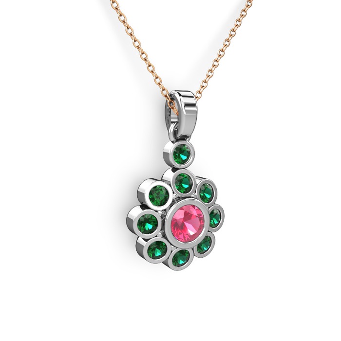 Yeşil kuvars ve pembe kuvars 8 ayar beyaz altın kolye (40 cm rose altın rolo zincir)