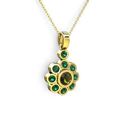 Yeşil kuvars ve peridot 14 ayar altın kolye (40 cm altın rolo zincir)