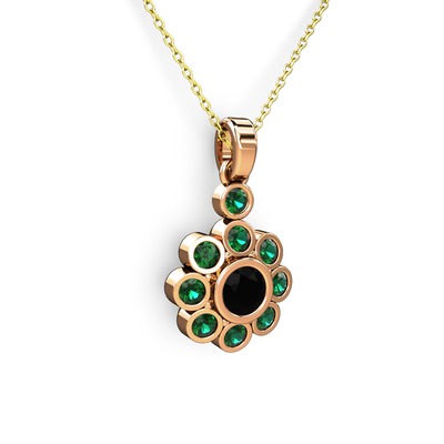 Yeşil kuvars ve siyah zirkon 14 ayar rose altın kolye (40 cm altın rolo zincir)
