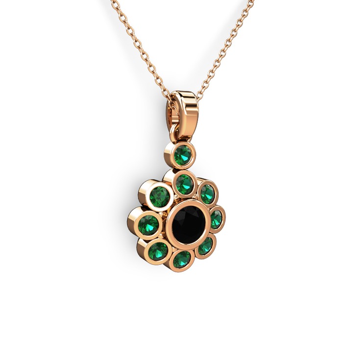 Yeşil kuvars ve siyah zirkon 14 ayar rose altın kolye (40 cm rose altın rolo zincir)